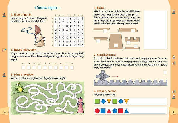 Az alsó tagozatosoknak szóló SAKK-LOGIKA programcsomag a legérdekesebb és egyben legeredményesebb módját választja a gondolkodás fejlesztésének: játszani tanít. Miközben a kisiskolások sakkoznak vagy más logikai játékokat játszanak, megismerik és megtanulják alkalmazni a játékszabályokat, megtervezik és átgondolják a saját lépéseiket, az ellenfél lehetséges válaszait és azok következményeit. Így a gyerekek a játék során nagyon hamar, szinte észrevétlenül jutnak el az összetett gondolkodás magasabb szintjeire. A sakk és a logika munkafüzetek egymás hatását erősítik, de önmagukban is alkalmazhatók. |